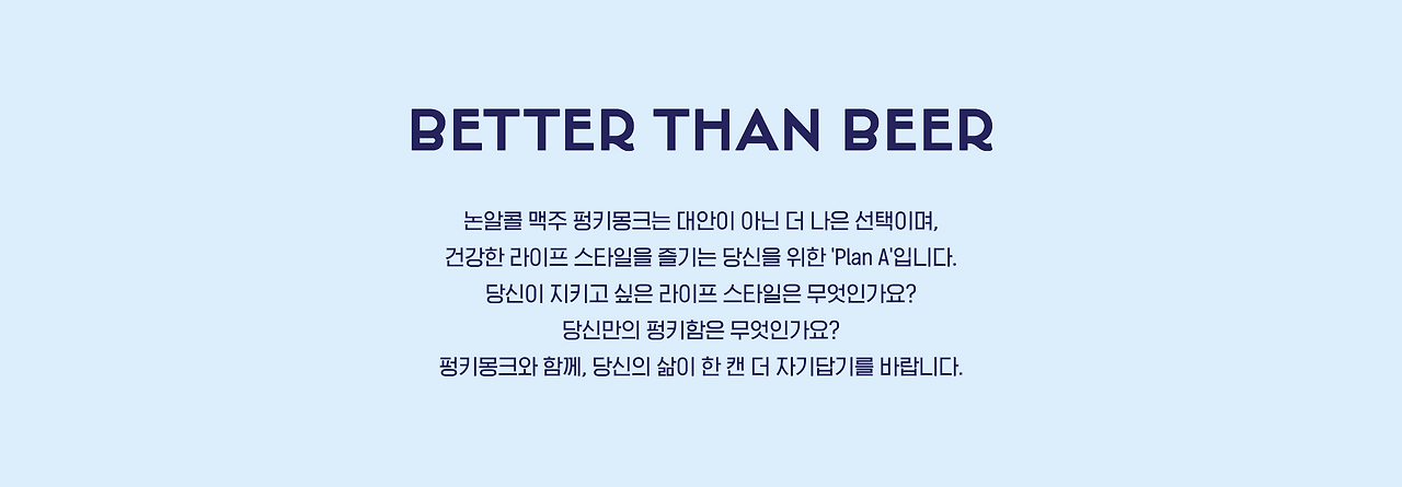 건강하고 지속 가능한 라이프 스타일을 가진 사람들을 타깃으로 구체화하여 이들에게 어필할 수 있는 브랜드 슬로건 ‘Better than beer’을 개발했습니다.