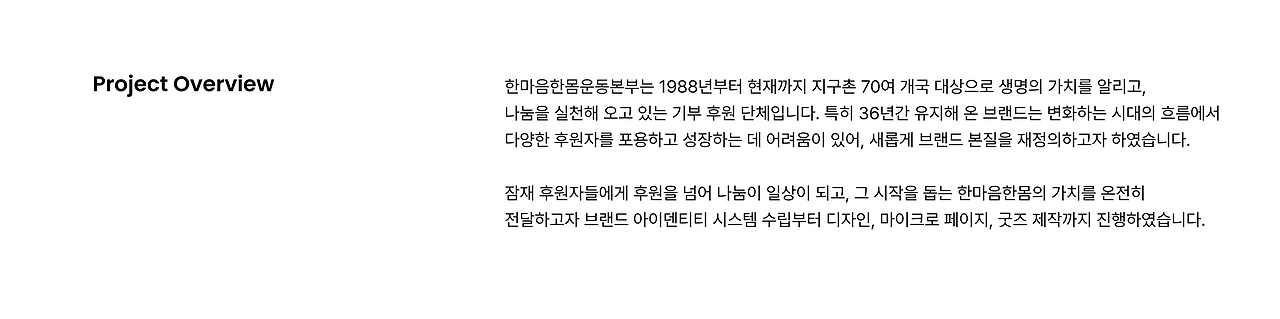 한마음한몸 NGO 브랜드 리뉴얼 프로젝트